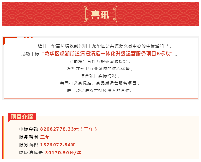 喜讯 | 稳步拓展——91免费下载安装环境中标龙华区观湖街道清扫清运一体化升级运营服务项目B标段