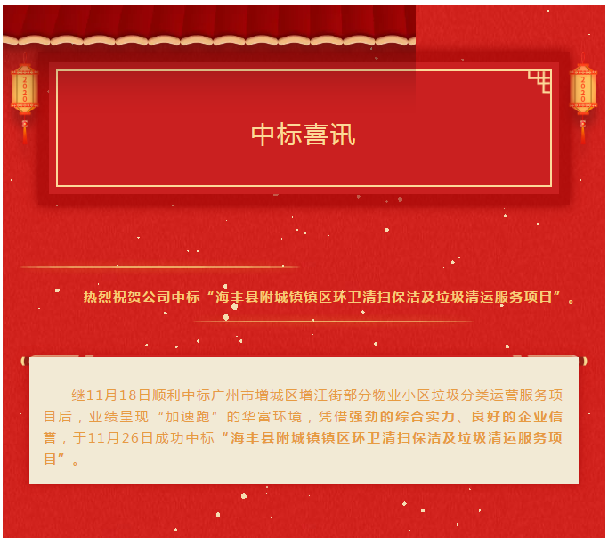 恭贺公司中标广州市增城区“增江街部份物业小区垃圾分类运营服务项目”