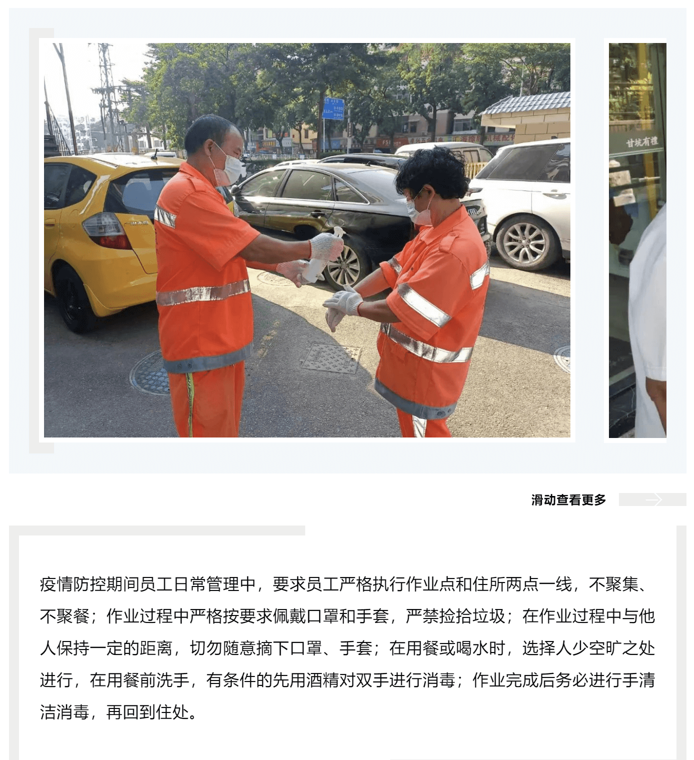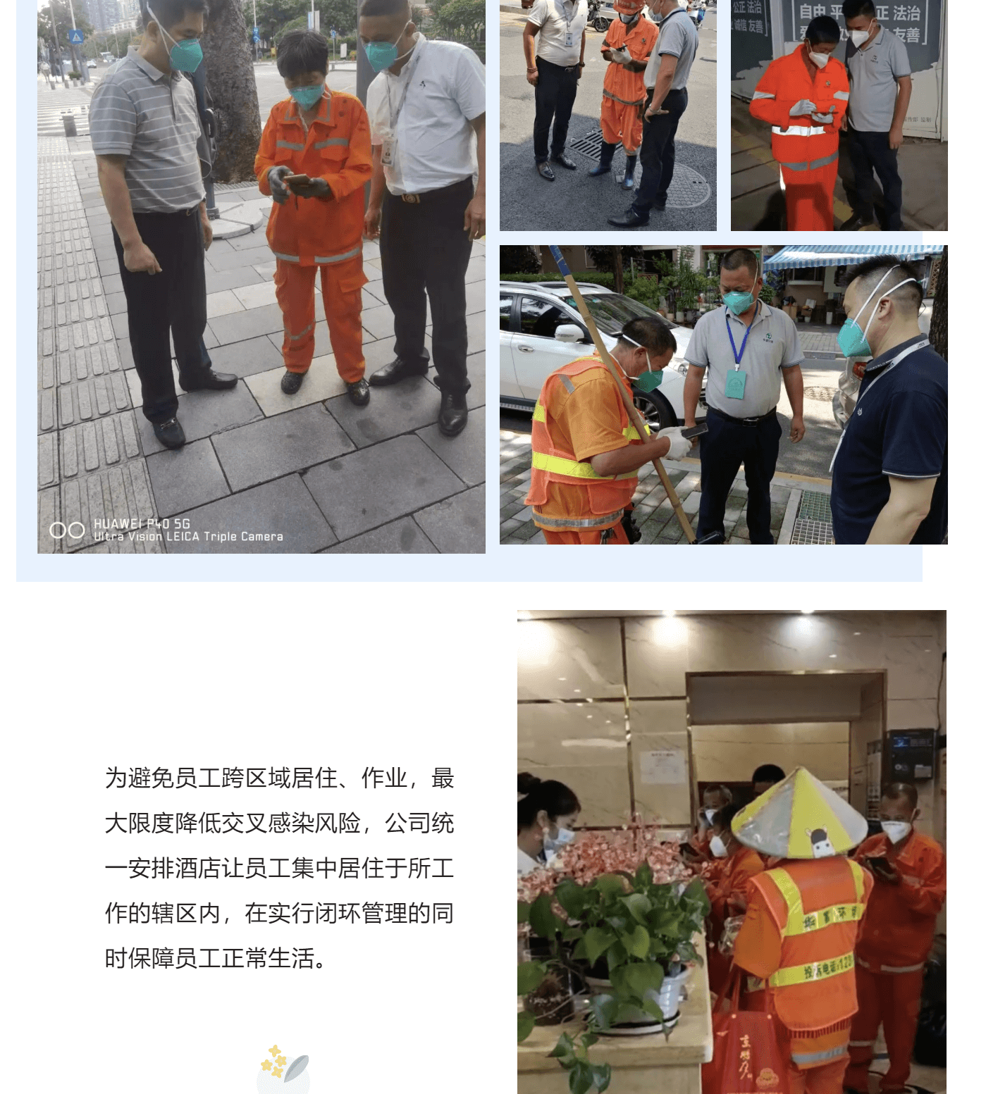 “认清疫情防控新形势,始终绷紧疫情防控这根弦,毫不放松抓好疫情防控各项工作。”按照公司部署要求,董事长陆柱带队深入一线督导检查防疫措施落实情况。要求项目强化“行程码、24小时核酸绿码、抗原检测”,落实戴口罩、体温检测、区域作业消毒等措施。同时严格督查检查疫情防控履职情况,严肃追究失职者责任,严格遵守属地政府、行业疫情防控有关规定和措施。