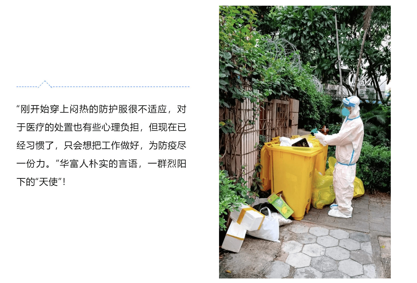 疫情期间,医废垃圾的收运任务,相比平时要艰巨许多,公司清运涉疫医疗垃圾,随着社会面核酸检测工作的不断开展,91免费下载安装人“全副武装”穿梭于南山街道学校等社区,收集、转运各核酸检测采样点医疗废物等垃圾。每次收运前,黄色垃圾袋都需要均匀喷洒消毒液,边边角角都不能放过,再将医用垃圾袋打包、替换,替换时严格按照作业规范进行,替换结束后再次对桶内进行消杀。垃圾袋装车后,对车辆进行全方位消杀,专人、专车、专袋的运送到垃圾焚烧发电厂进行统一处置。