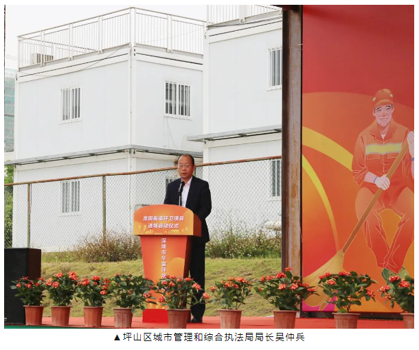 吴局长在启动仪式上致辞表示,结合近期市城管印发的《环卫事业高质量发展行动方案》,龙田街道以新一轮环卫招标为契机,工作重心下移,全区率先整合,搭建城市管理综合平台的方式,是推动坪山区环卫高质量发展的重要举措。同时,对有关部门单位与企业提出三项建议和要求: